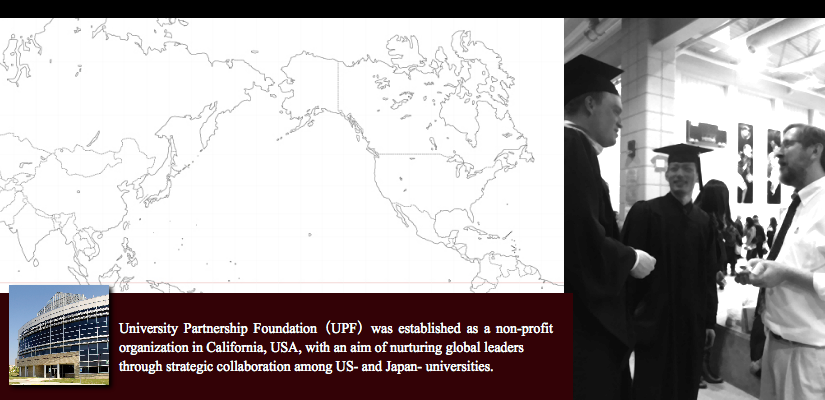 University Partnership Foundation(UPF)was established as a non-profit organization in California to promote the globalization of Japanese universities and high schools, nurture global leaders, and establish strategic collaborations between U.S. and Japanese educational institutions.